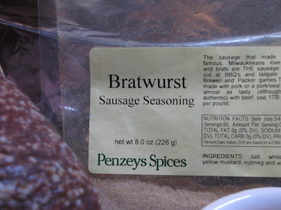 - 7 TBS of Penzey's Bratwurst Seasoning